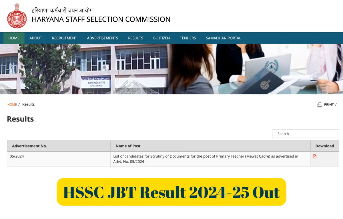 HSSC JBT Result 2024-25 PDF Link