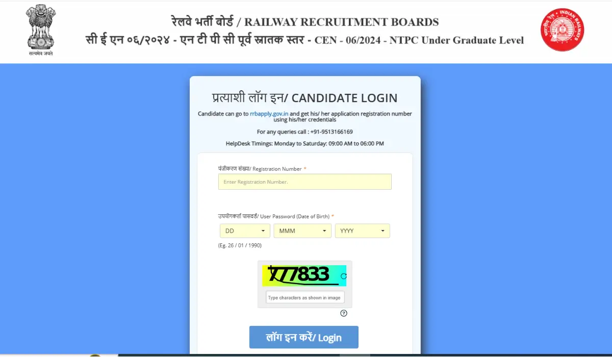 - Look for the link related to the “RRB NTPC CEN- 06/2024” under “Latest Announcements” or “Important Links”.